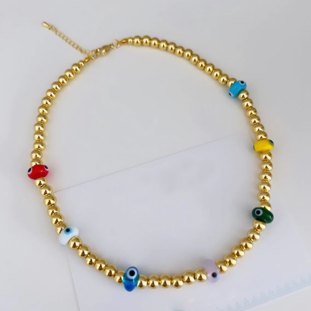 Go2bobo Glaze Eye Choker Necklaces Colorful Golden Plated Bead Boho Chain Necklace For Women High Quality Summer Jewelry – Sumsfashion