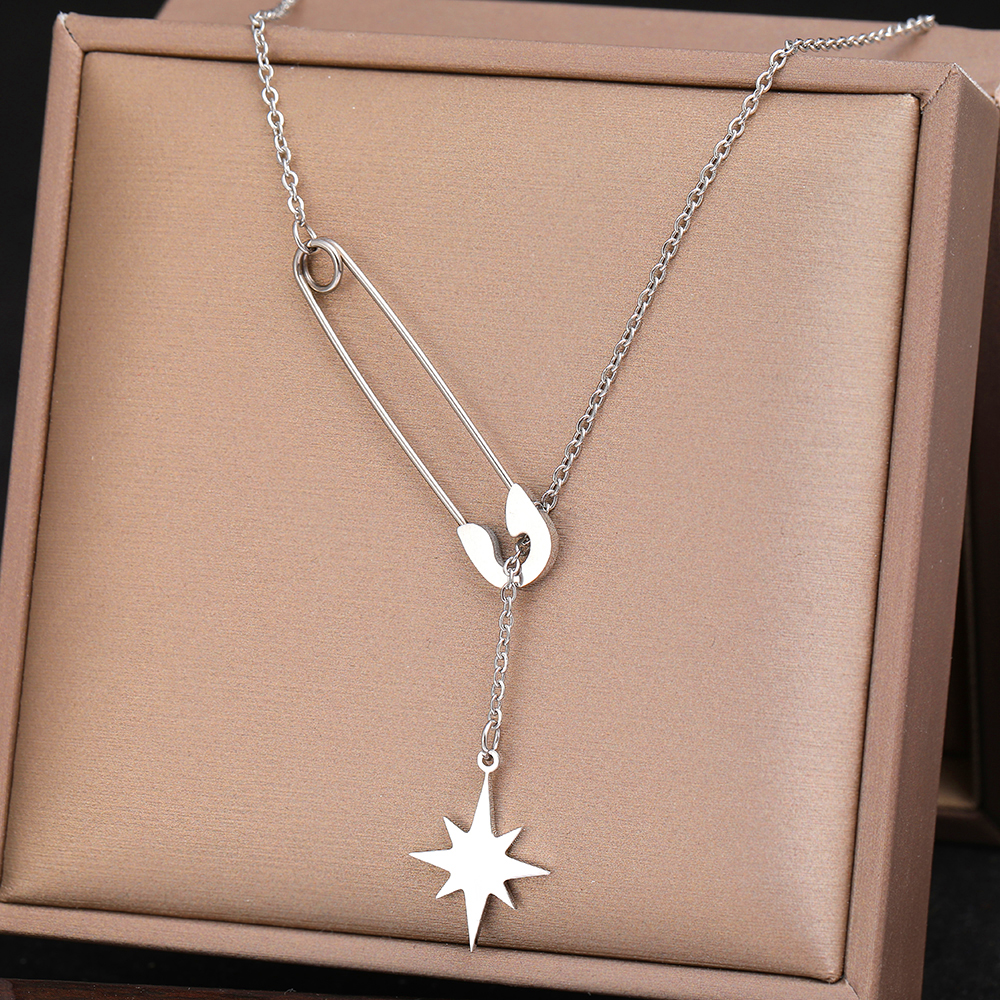Stainless Steel Necklaces Paperclip Design Senior Exquisite Polaris Stars Choker Chains Necklace For Women Jewelry Gifts Silver Color – Sumsfashion